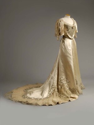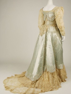 • This look became popular closer to the turn of the century as Edwardian fashion began to take over, rather than the upright silhouette of the earlier time period. The evening wear for the wedding party will more closely resemble the turn of the century silhouette (wider skirts, rather than narrow from the waist down).